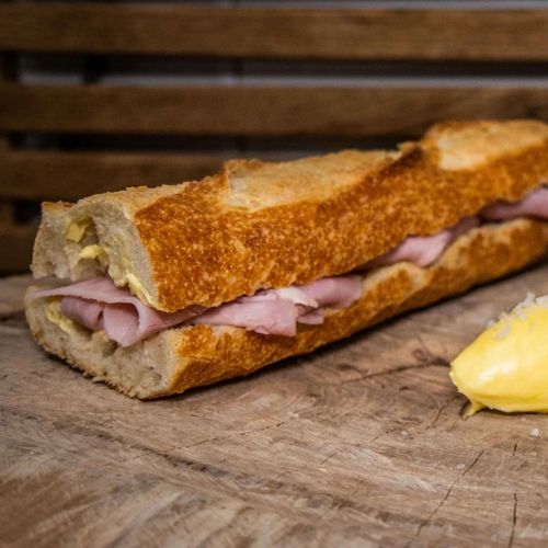 Dans sa forme la plus fidèle, tout repose sur un trio sacré : un jambon de Paris tendre et délicatement salé, une baguette fraîche et croustillante, et un beurre généreux — idéalement demi-sel — qui apporte l’onctuosité et le caractère. Rien à ajouter, rien à retirer : c’est justement cette pureté qui fait la beauté du jambon-beurre.