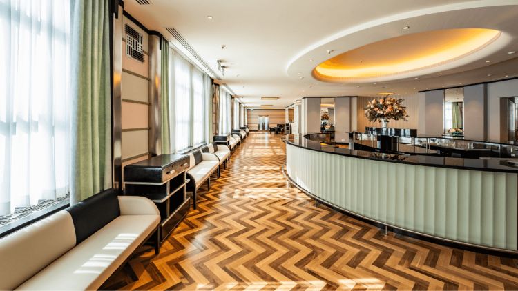 Situé au troisième étage de l’hôtel, le cadre est absolument magnifique et offre une vue imprenable sur le cœur de la ville. Réalisé par l’expert Zébulon Perron (Montréal Plaza, Un Po Di Piu, Ibérica), le vaste décor est particulièrement élégant. Le designer a imaginé un espace de brasserie chic et intemporelle, saupoudré d’une touche d’art contemporain qui joue avec les textures, les tons rosés et verts, le tout complété par un éclairage soigné. L’espace The Social Square propose un coin salle à manger, un lounge pour se détendre autour d’un verre, un super bar et une très belle terrasse pouvant accueillir 300 couverts.