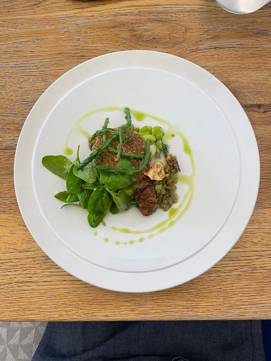 Crème brûlée de courge, prescinseua (un fromage frais de la région) et graines grillées. Le chef avait ajouté quelques asperges sauvages très tendres, cueillies le matin même par sa mamma, une sainte !