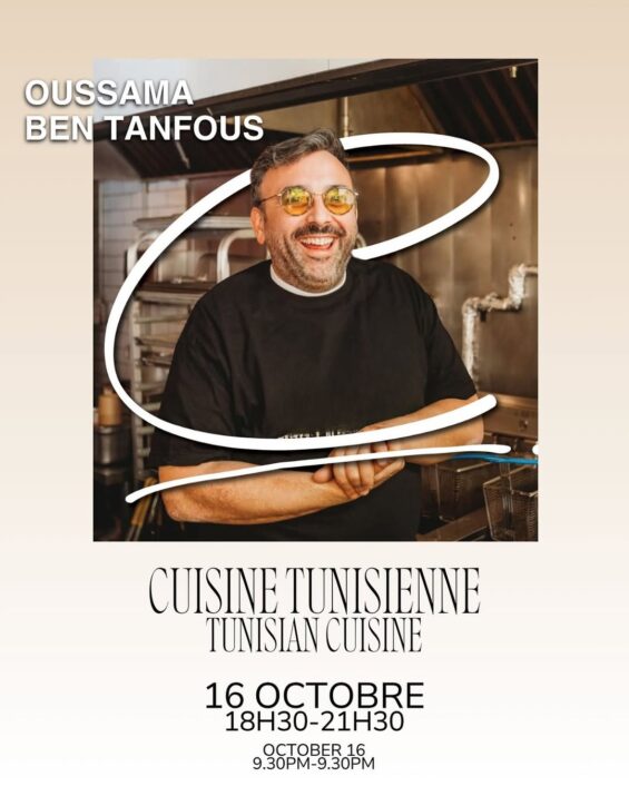 Une soirée exclusive pour plonger dans les saveurs de la Tunisie : le chef Oussama Ben Tanfous (Roch le Coq) signe un menu unique où épices, fraîcheur et convivialité se rencontrent. Format intimiste, ambiance chaleureuse — l’occasion parfaite de découvrir sa cuisine autrement. Places limitées : réservation recommandée.