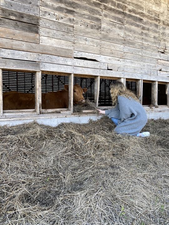 Tout au long de la visite, on a profité des explications des deux passionnés. Mais c’est en s’approchant des bêtes que les sœurs Boulay ont craqué. On a vite compris que pour attirer les vaches, les poignées de foin étaient parfaites.